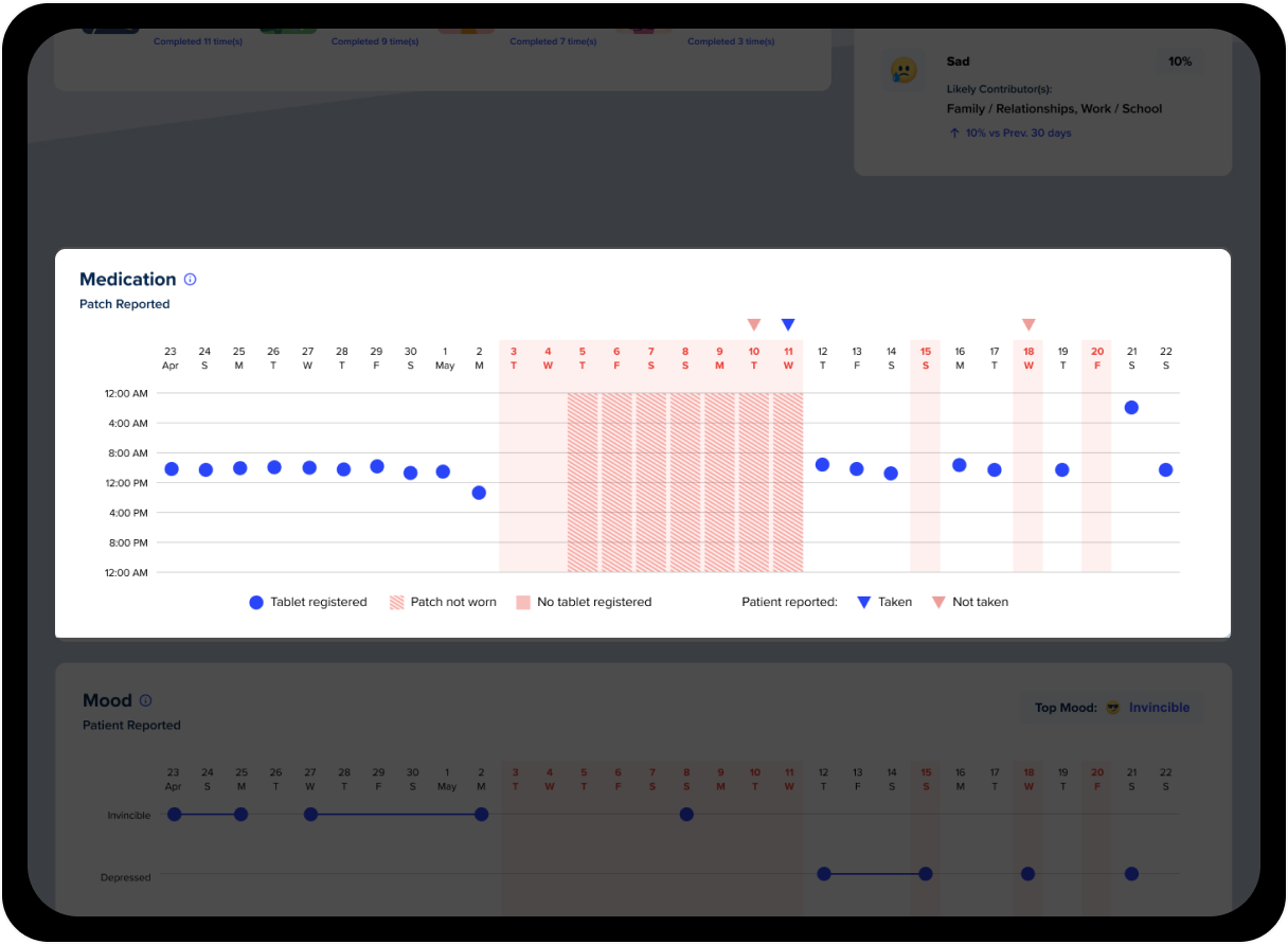One user group self-manages chronic conditions, while the other delivers medical care. Through a single app, wearable device, and prescription medication, our mission was to create a digital experience ensuring effortless setup and smooth daily usage.